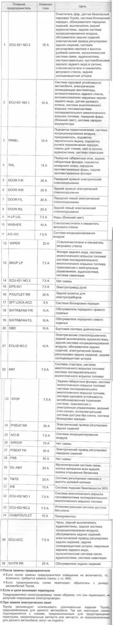 Предохранители автомобиля Toyota RAV4 с 2005 г