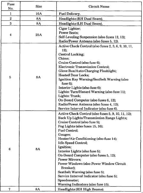 Предохранители и реле BMW 7 (e23) 1983-1986