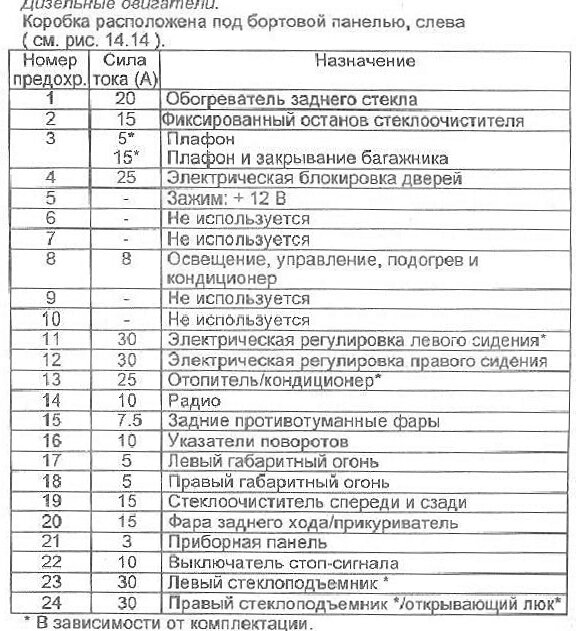 Схема предохранителей Renault Safrane