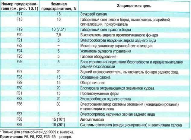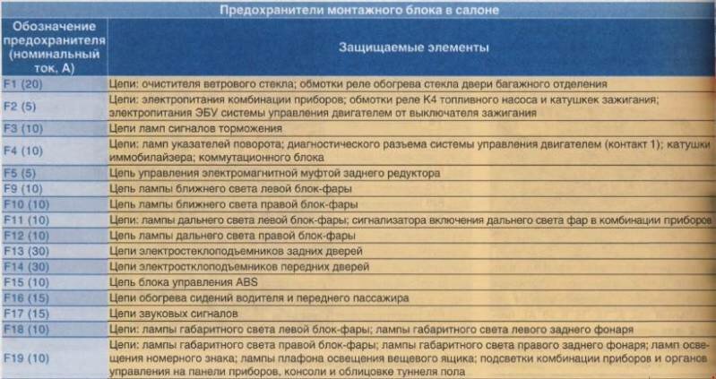 Блок предохранителей и реле в салоне