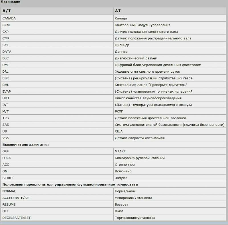 Схемы электрооборудования - используемые сокращения и их расшифровка