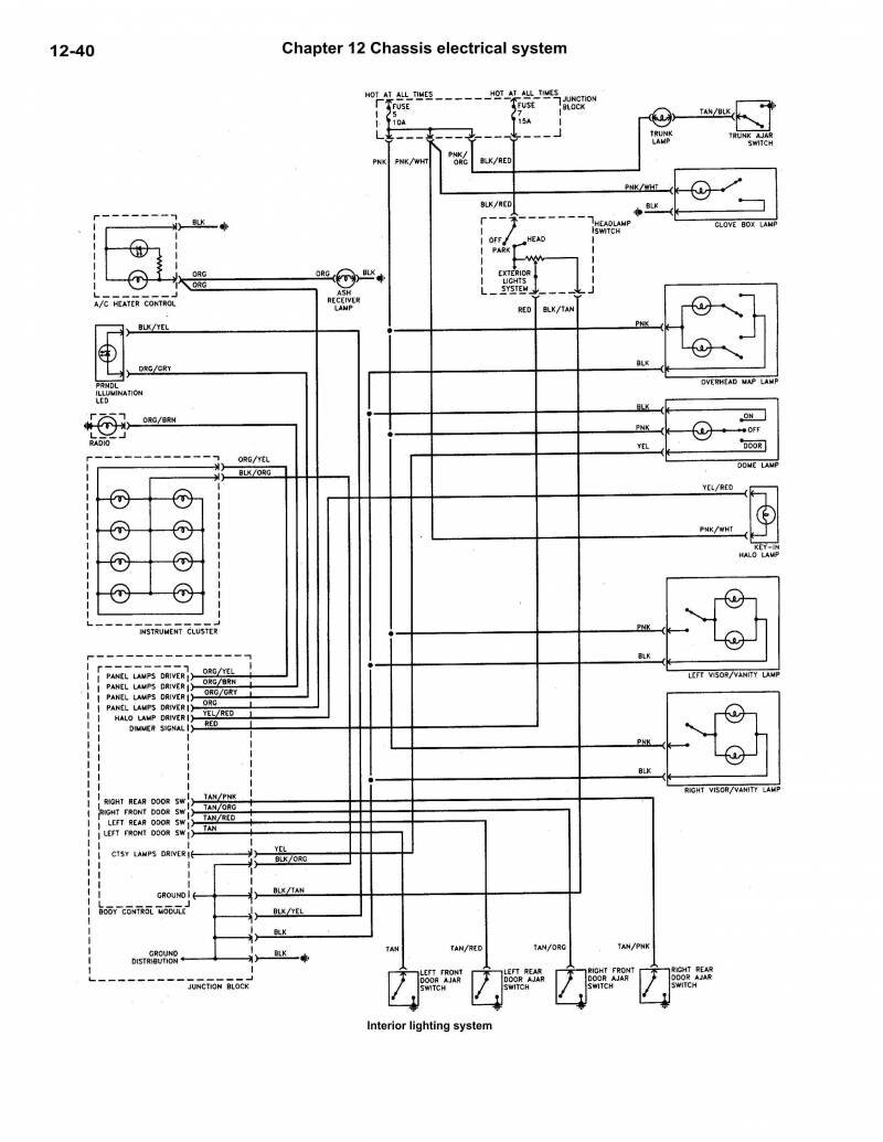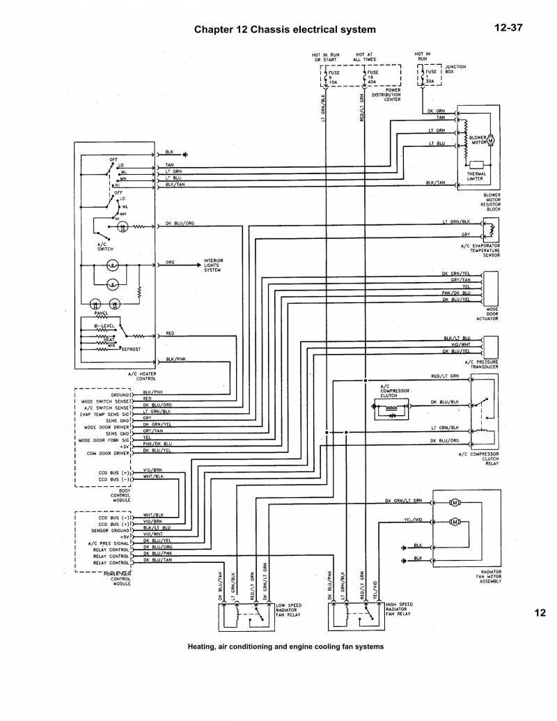 Электросхема воздушного кондиционера, обогрева и модуля охлаждения двигателя Додж Стратус