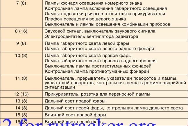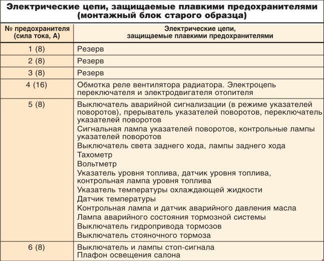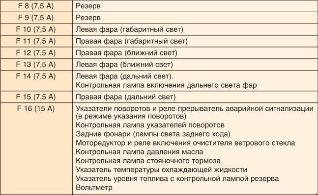 Перечень предохранителей ИЖ 2126 "Ода"
