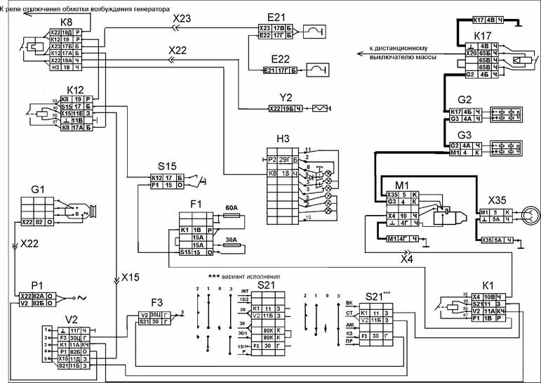 Электросхема систем энергоснабжения и очистки КАМАЗ