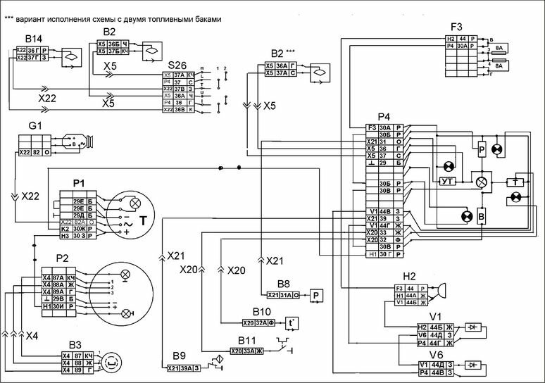 Электросхема систем световой сигнализации КАМАЗ