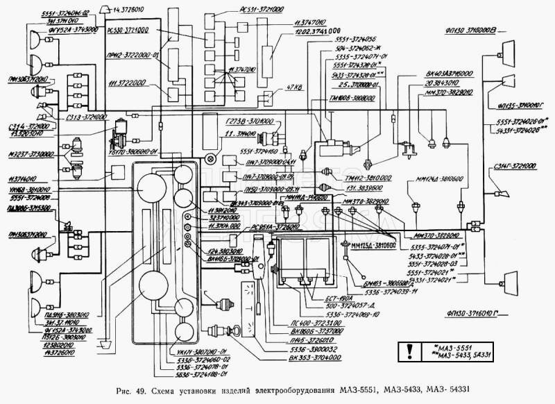 Электросхема МАЗ 5551, МАЗ 5433, МАЗ 54331 и МАЗ 5433
