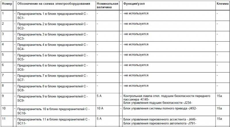 Предохранители в блоке предохранителей C, в пространстве для ног водителя