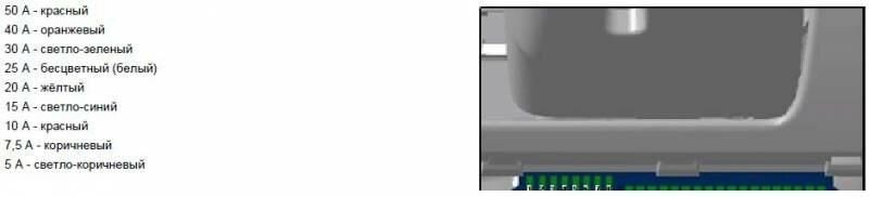 Монтажное положение предохранителей в коммутационном блоке с 2007 года
