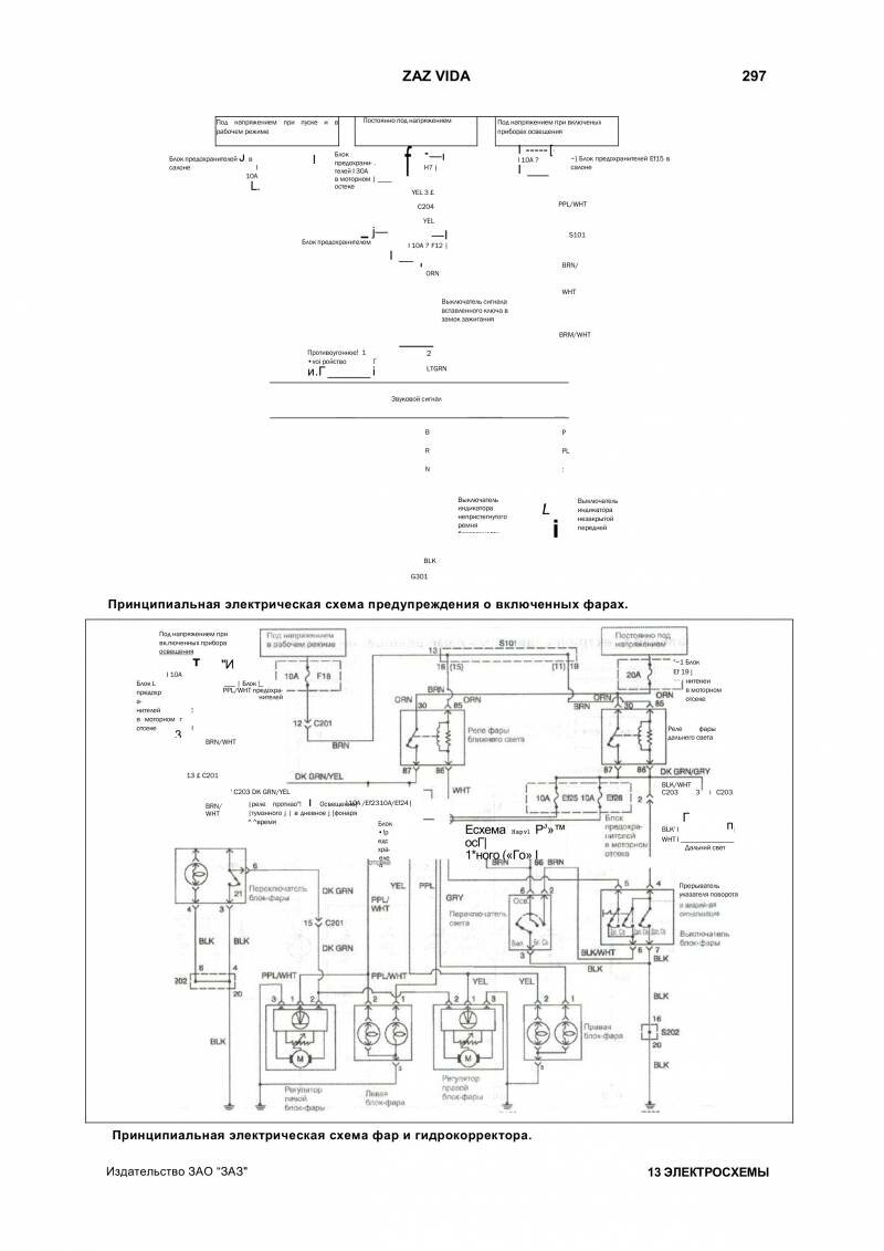 Электросхема фар и гидрокорректора Заз Вида