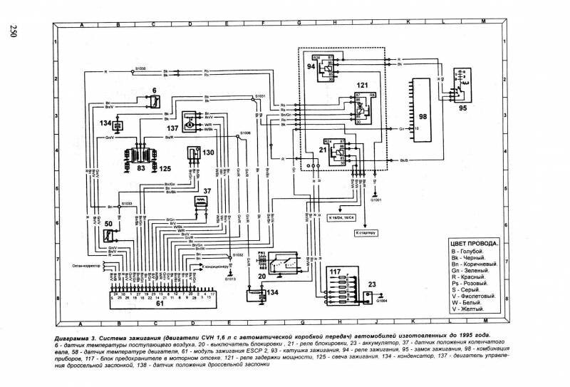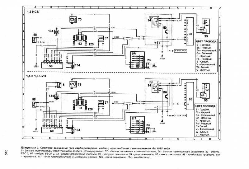 Числами в местах соединений на электрической схеме обозначены номера токовых контуров в соответствии со стандартом DIN.