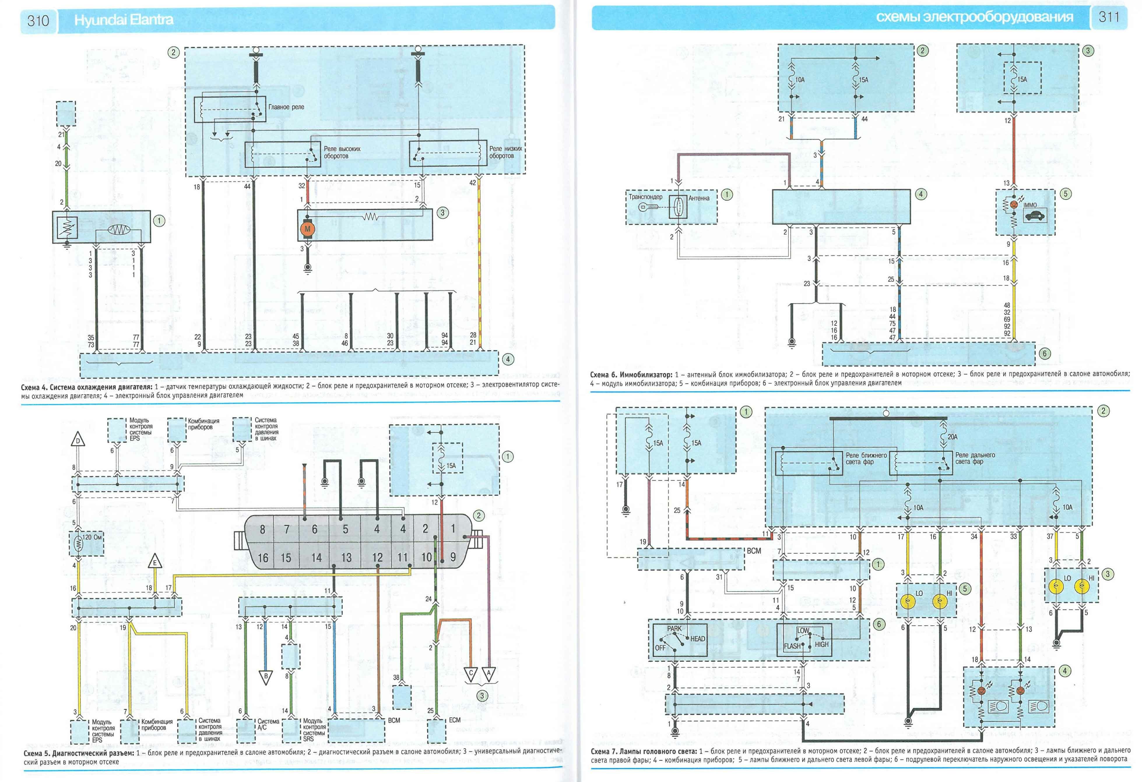 Схемы электрооборудования омывателей стёкол и приводов замков дверей Элантра