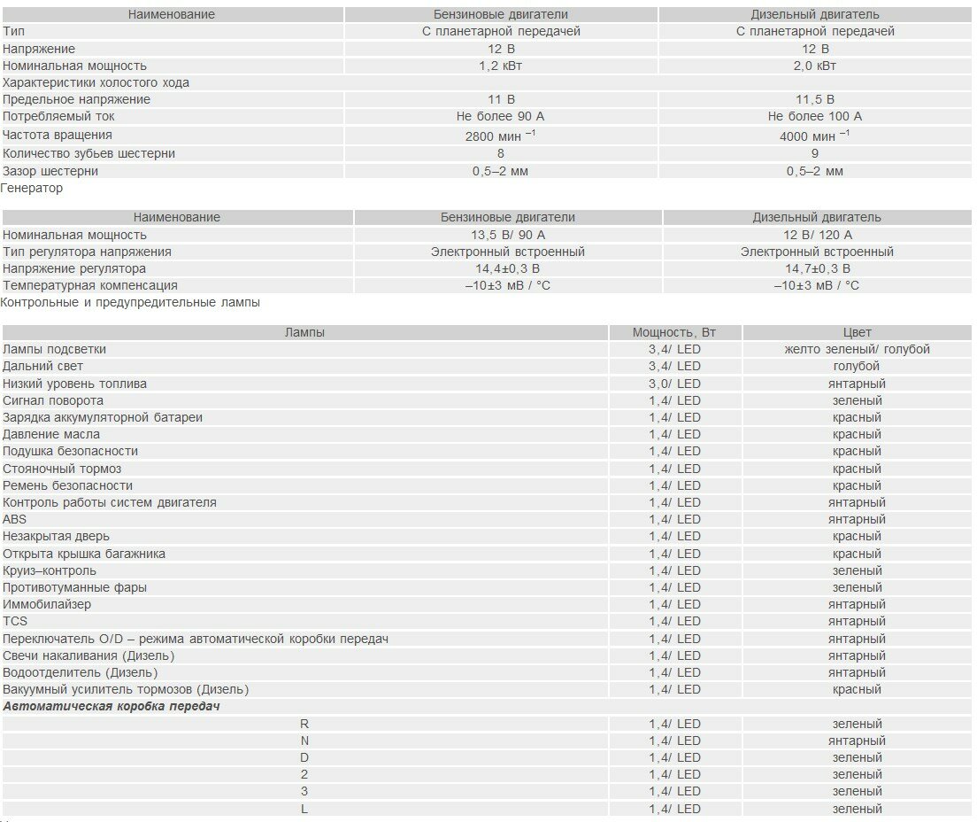 Система зарядки включает батарею, генератор со встроенным регулятором и контрольной лампой зарядки и проводами. В автомобиле установлен генератор переменного тока с выпрямителем на шести диодах. Переменный ток, вырабатываемый генератором, выпрямляется диодами и поступает на клемму «B» генератора. Кроме того, напряжение зарядки генератора регулируется системой контроля напряжения батареи.