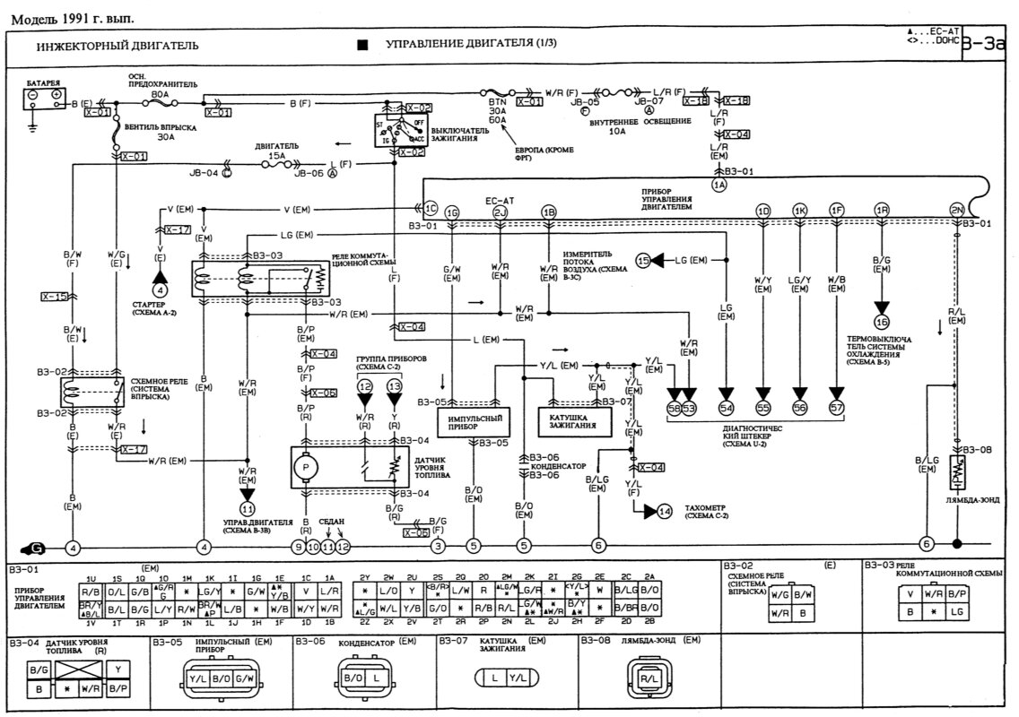 Схема инжекторного двигателя Мазда 323 - прокладка кабелей