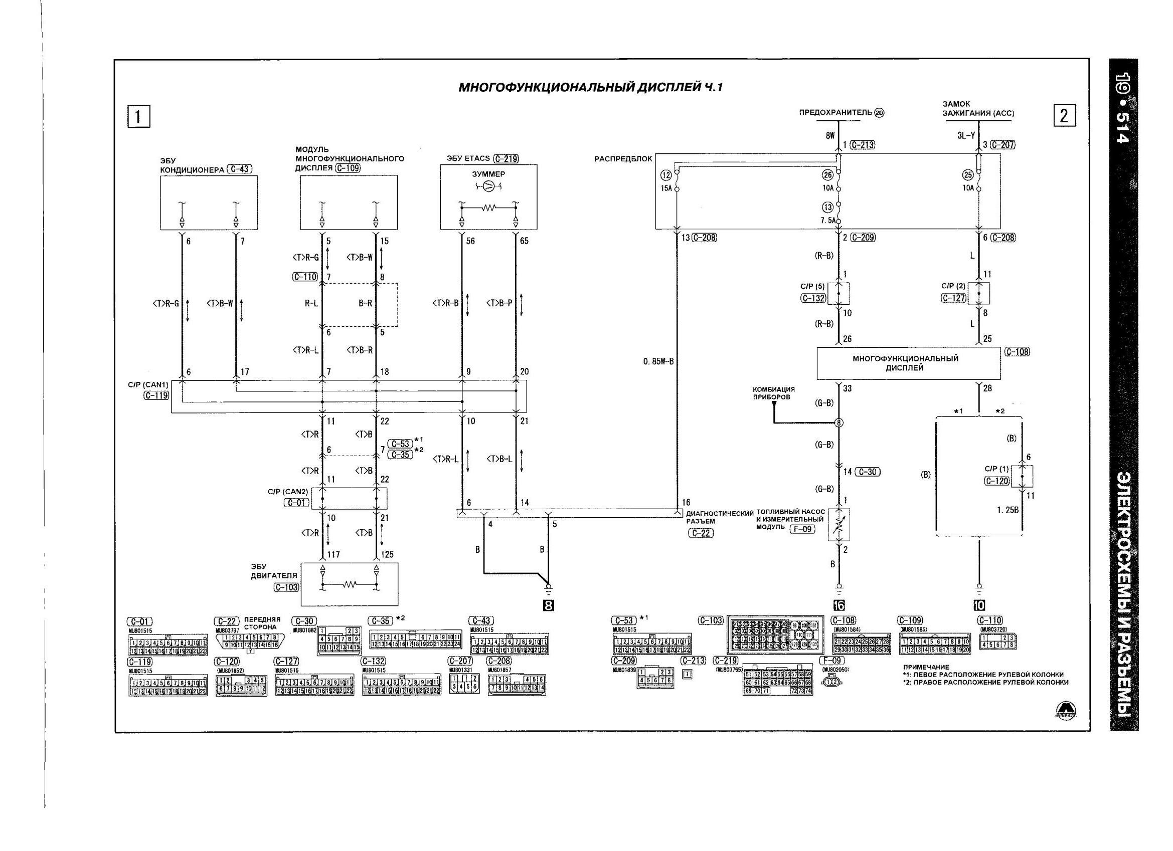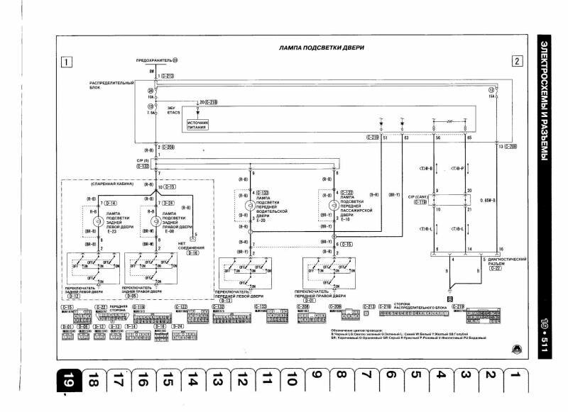 Принципиальная электрическая схема распределительного блока Митсубиси Л200