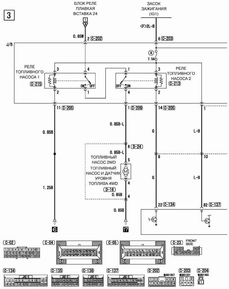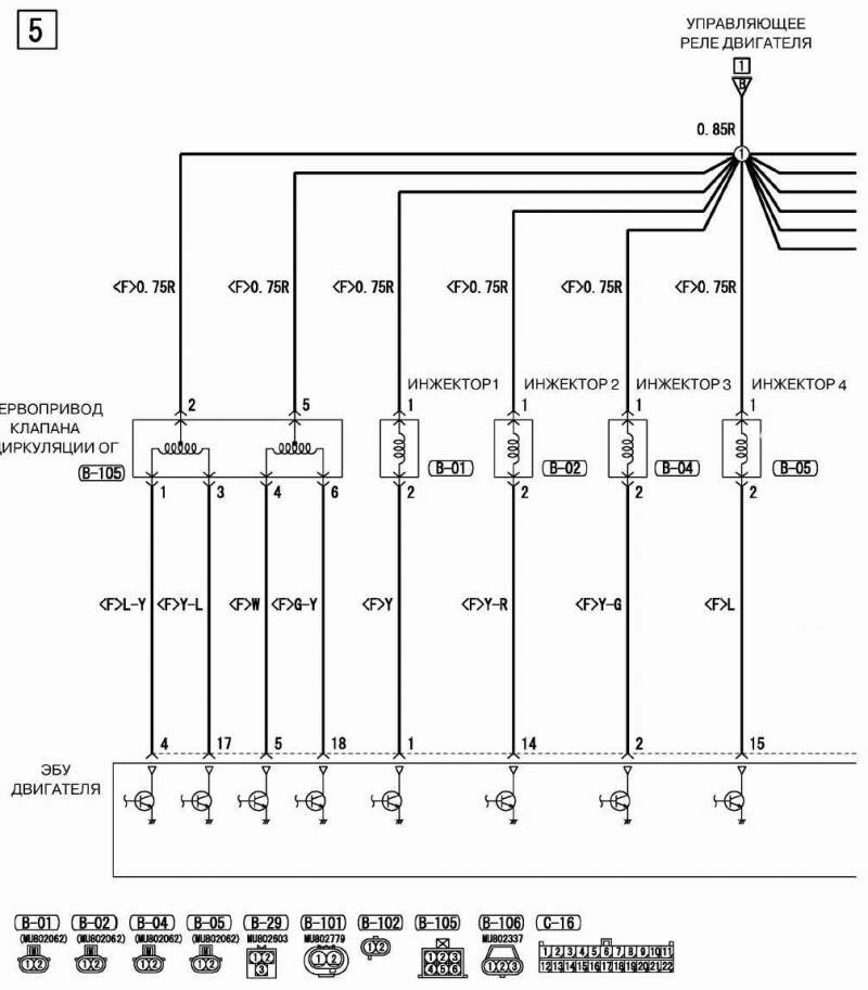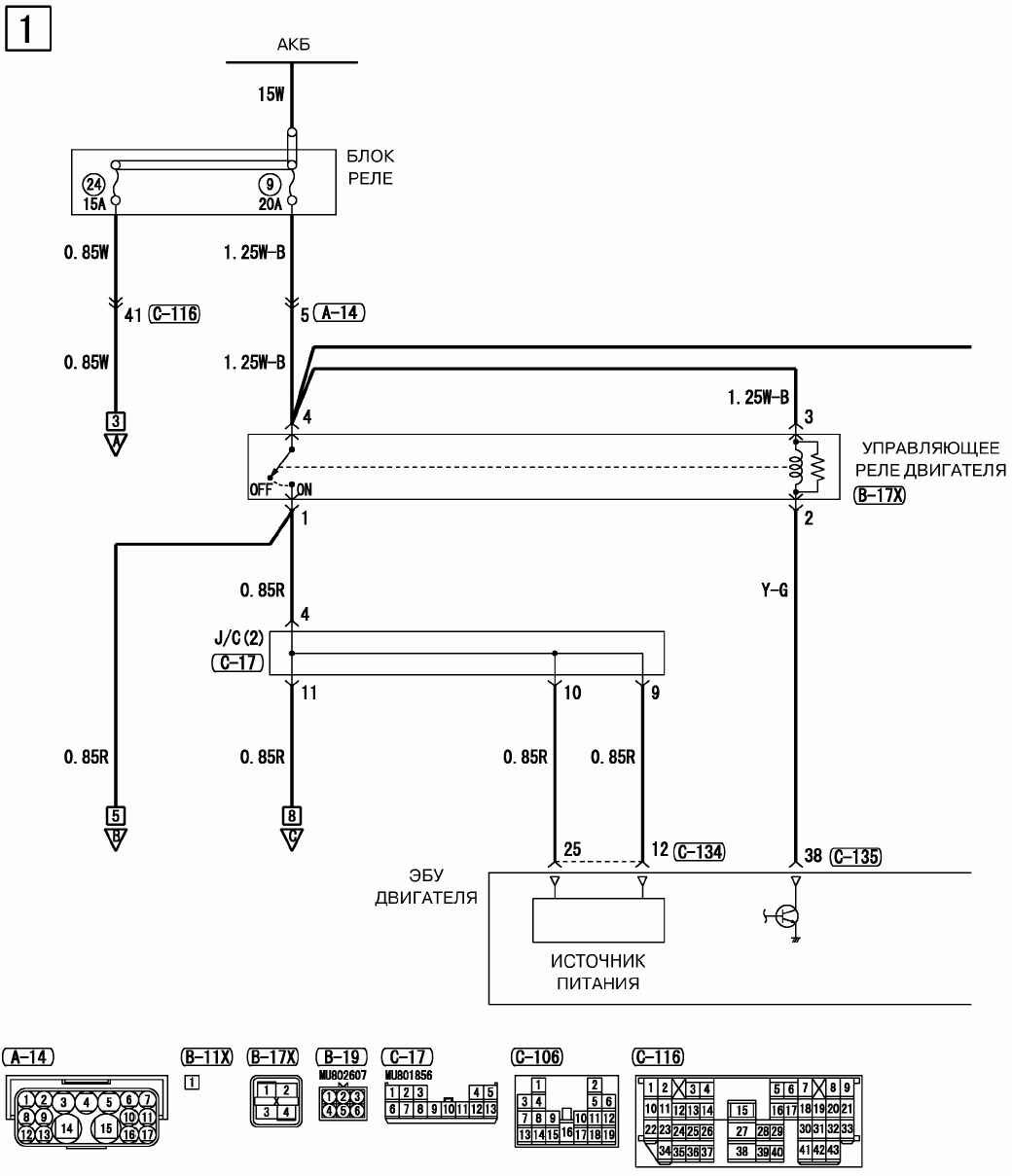 Электросхема диагностического разъёма Митсубиси Аутландер