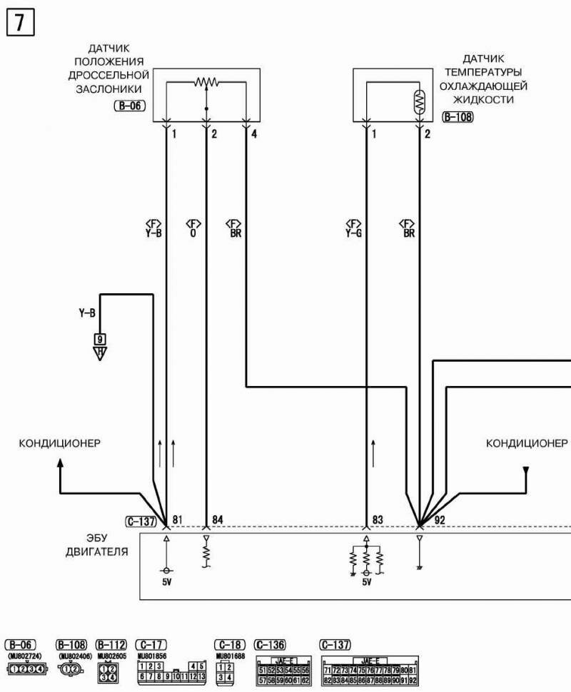 Схема датчиков дроссельной заслонки и температуры охлаждающей жидкости