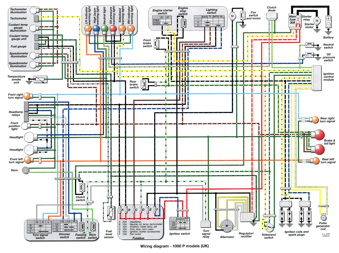 Электросхема мотоцикла хонда CBR1000F 1993