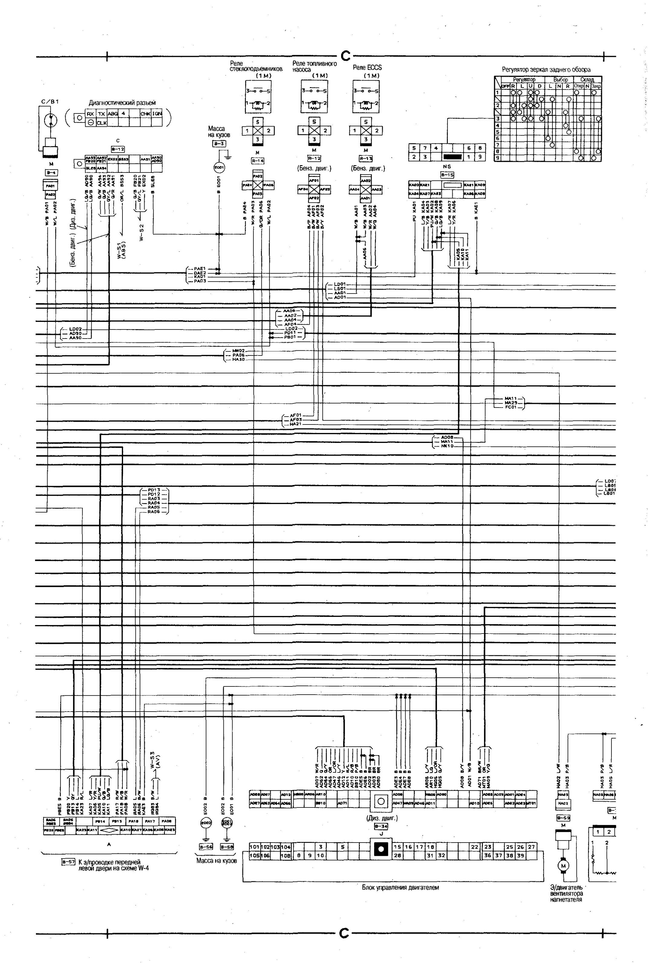 Электросхема соединений главной проводки Nissan Bluebird