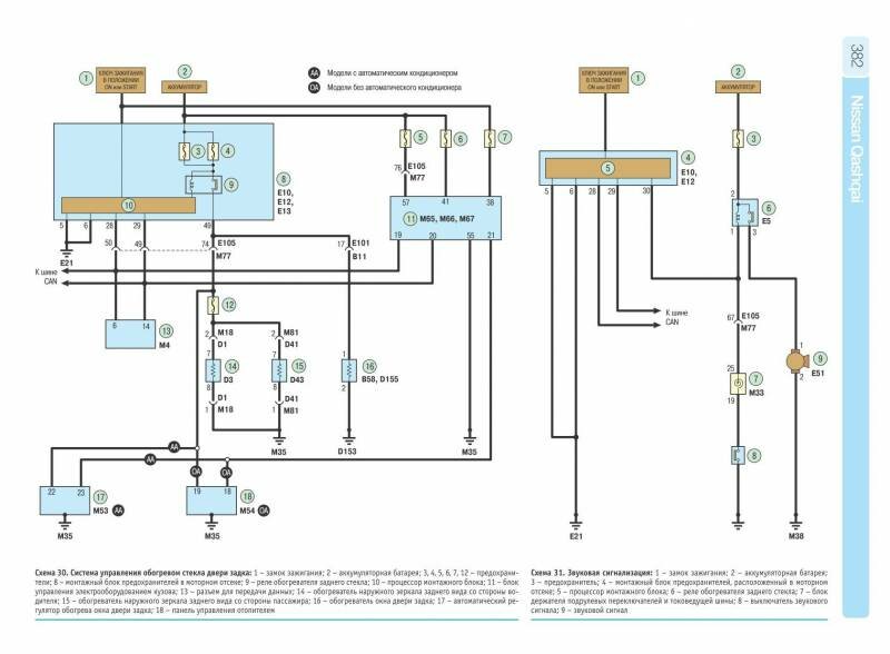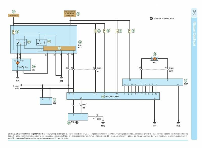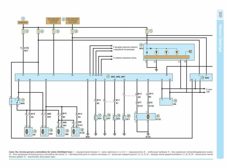 Схема управления стеклоподъёмниками Nissan Qashqai
