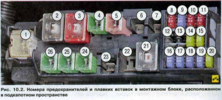 20. лямбда-зонды (датчики кислорода), электроклапан продувки угольного фильтра, топливные форсунки, регулятор охлаждающего вентилятора, система запуска, кондей, стеклоподъемники