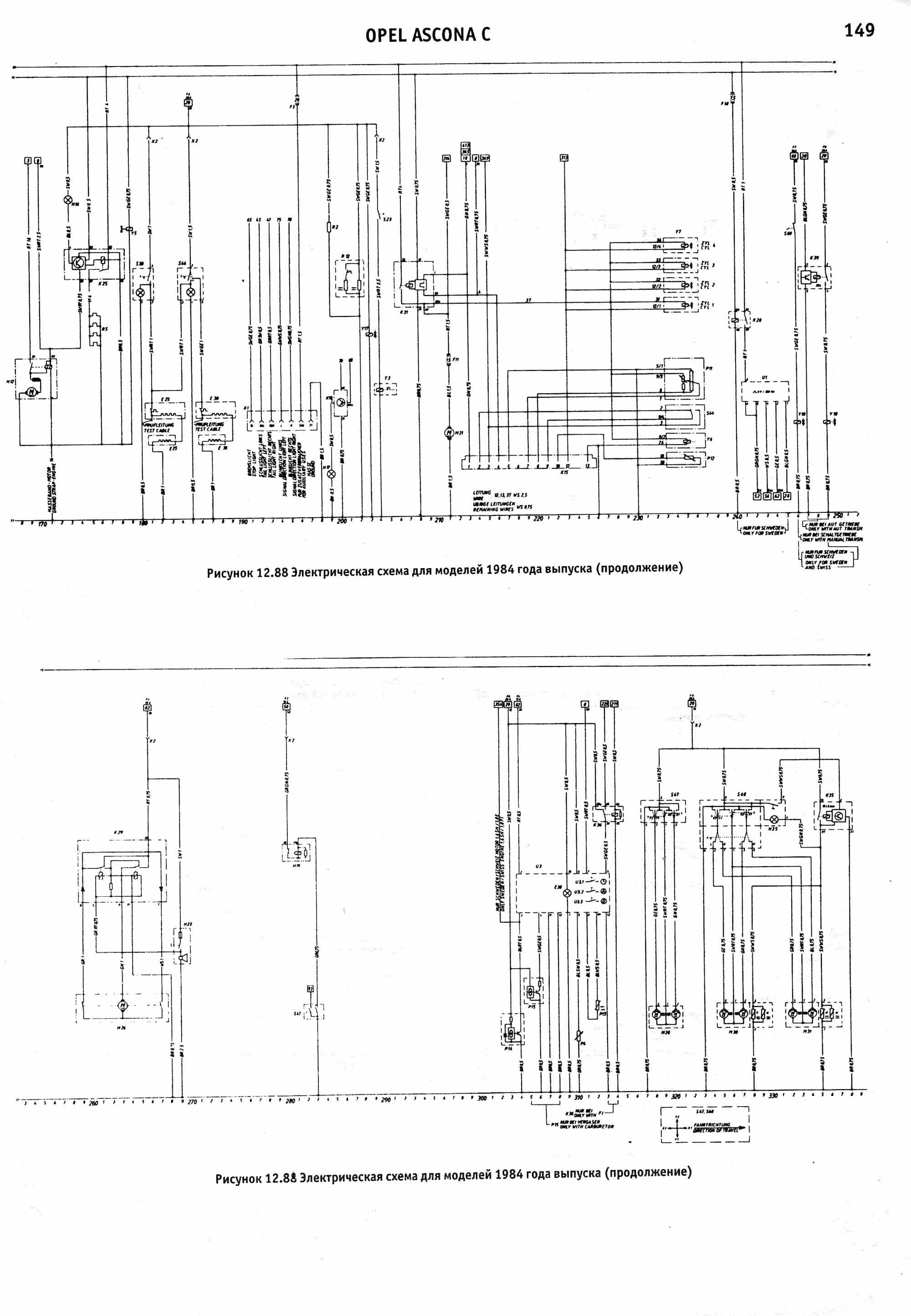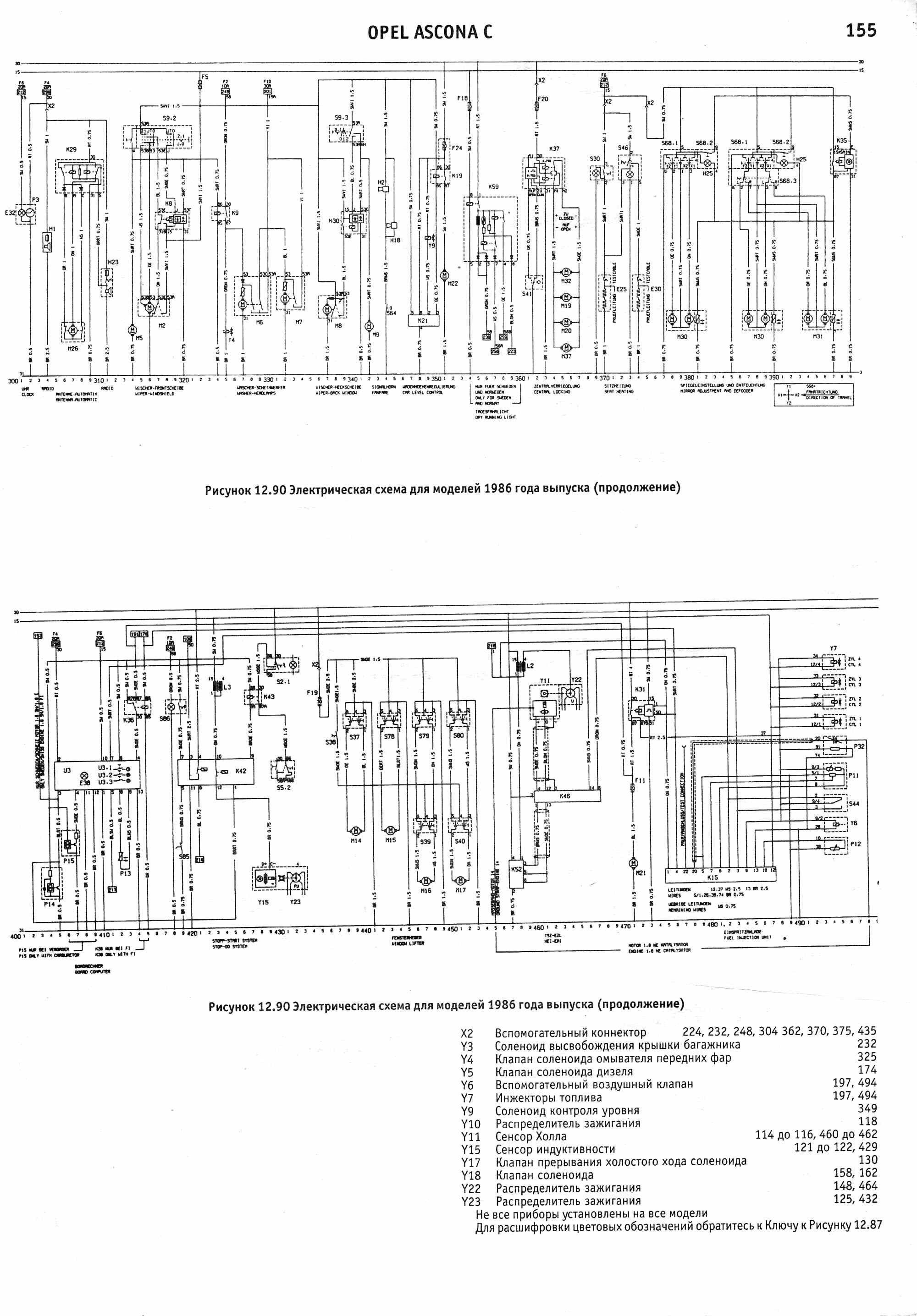 Схема электрическая Opel Ascona 1988