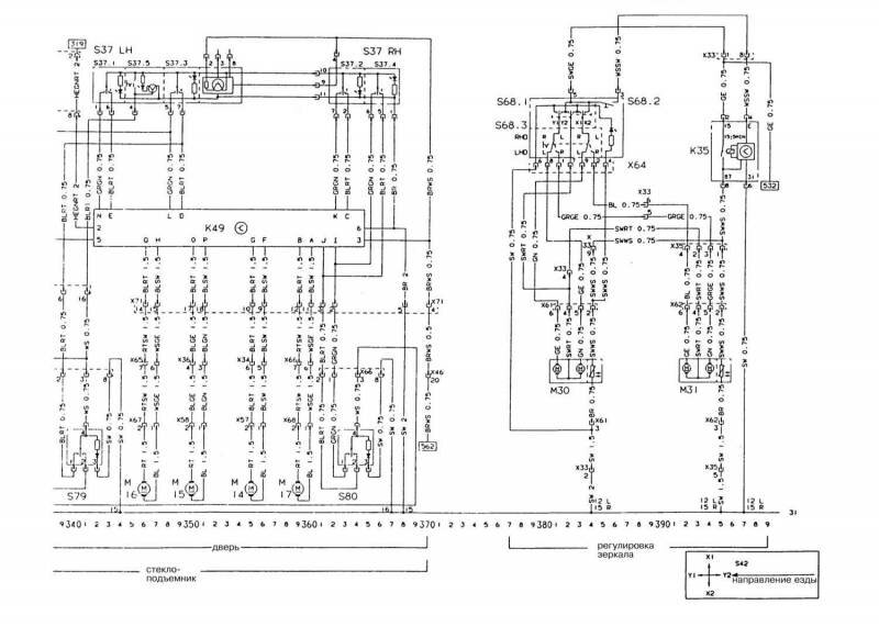 K49 Блок управления, стеклоподъемник 326 - 332, 342 - 364