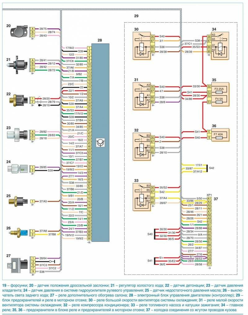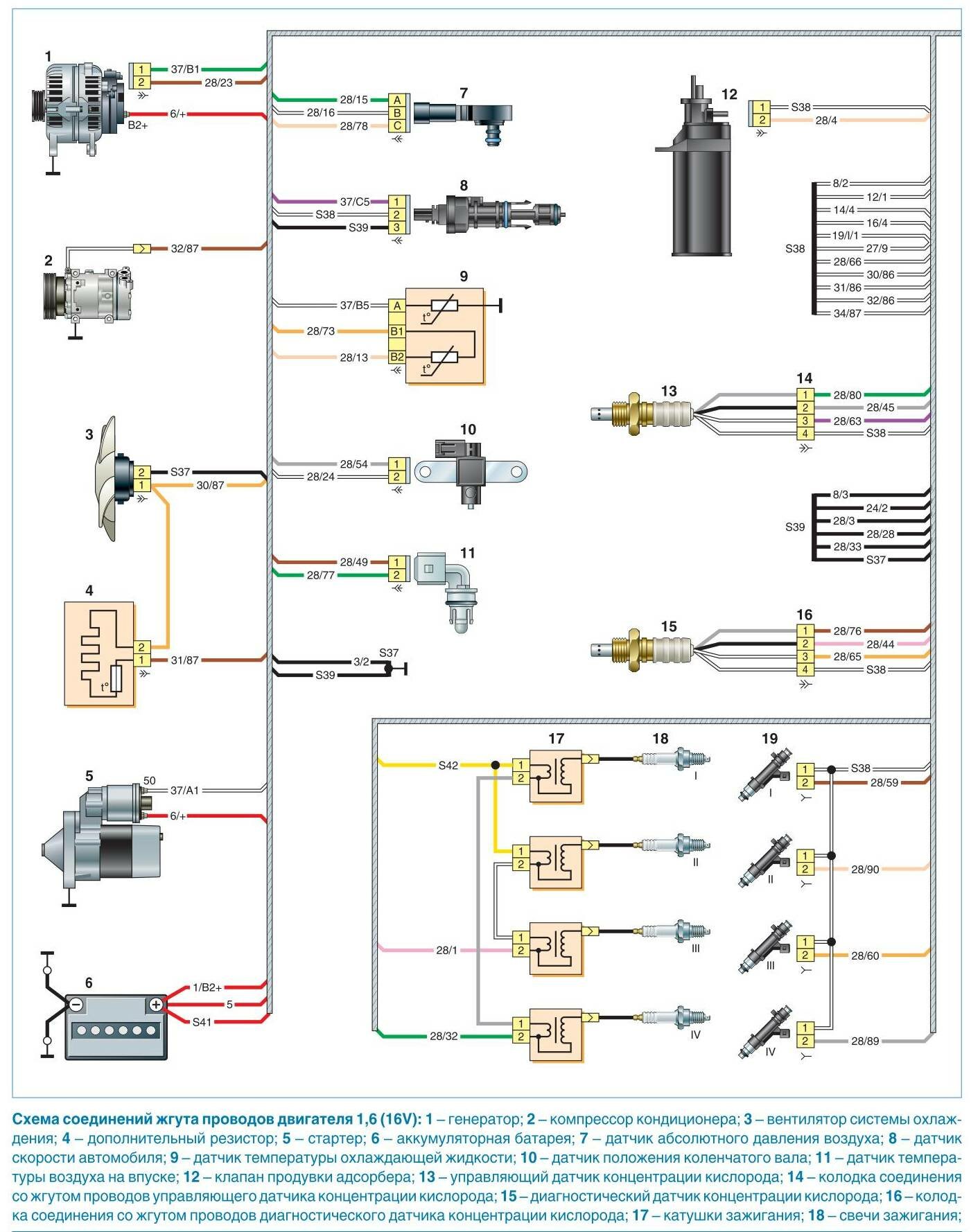 Схема соединений жгута проводов Renault Sandero двигателя 1,6 16V