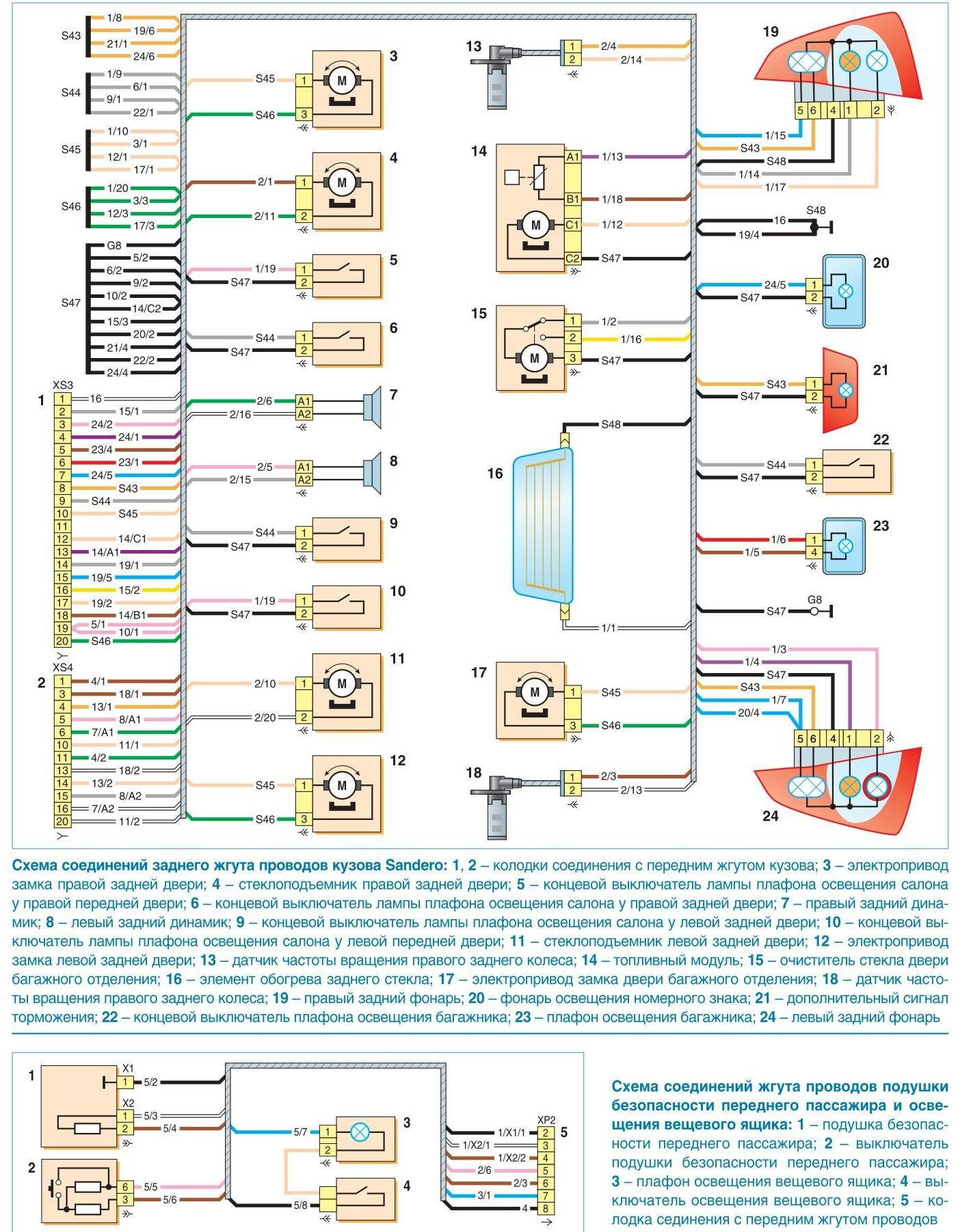 Схема соединений заднего жгута проводов кузова Рено Сандеро
