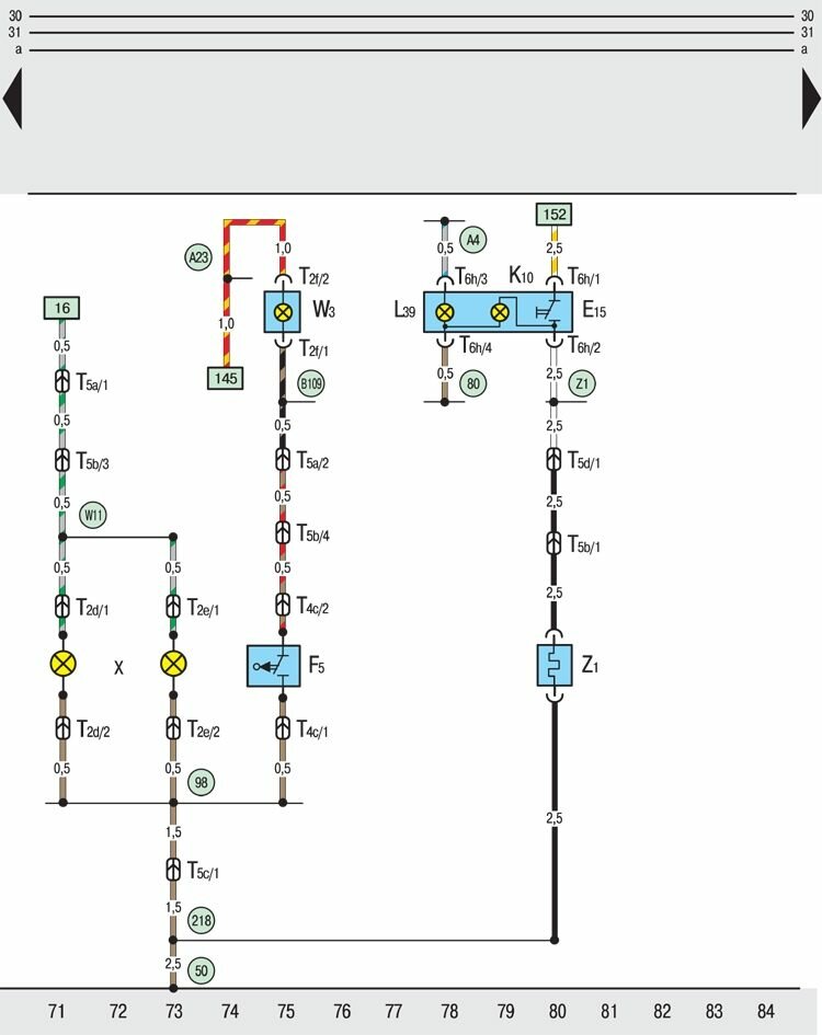 T5b – пятиконтактный штекерный разъем, в крышке багажника слева (коричневый);