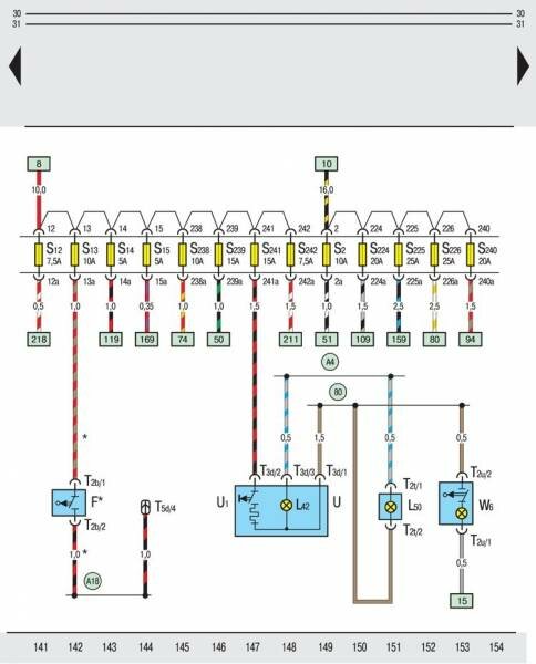 Электросхема на Замок зажигания, коробка предохранителей Шкода