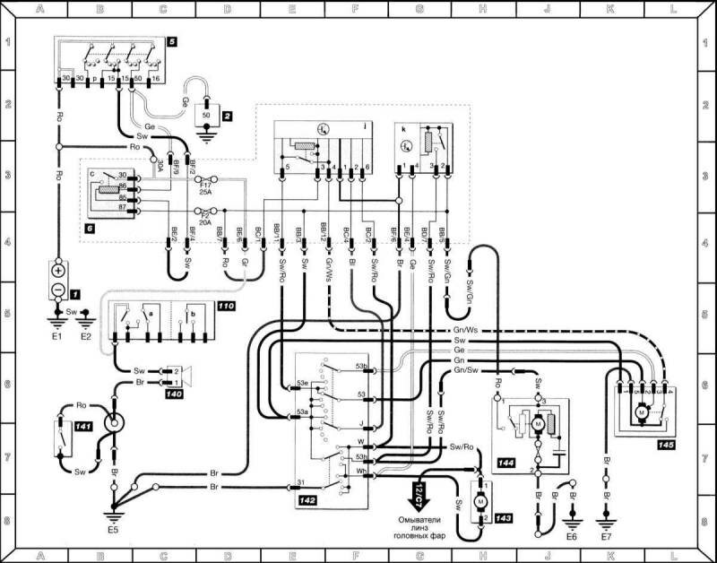 k = реле заднего омывателя/очистителя