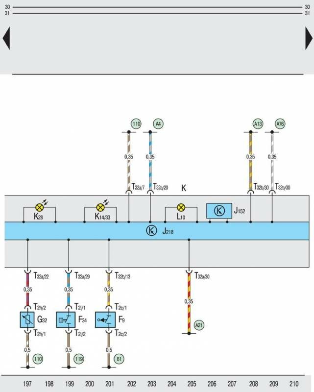 T32a – 32-контактный штекерный разъем, на панели приборов (синий);