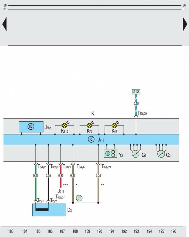 D2 – обмотка считывания иммобилизатора (на замке-выключателе зажигания и приборов);