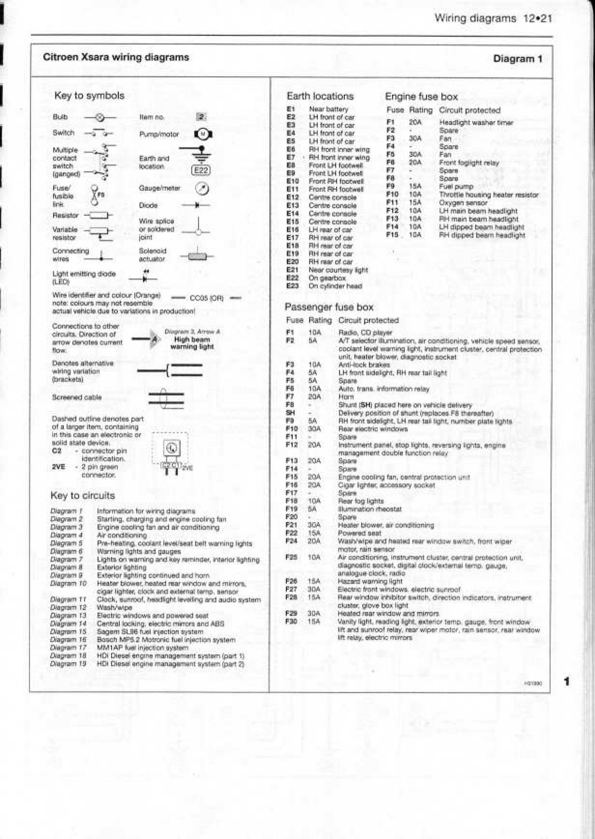 Электросхемы автомобиля Citroen Xsara