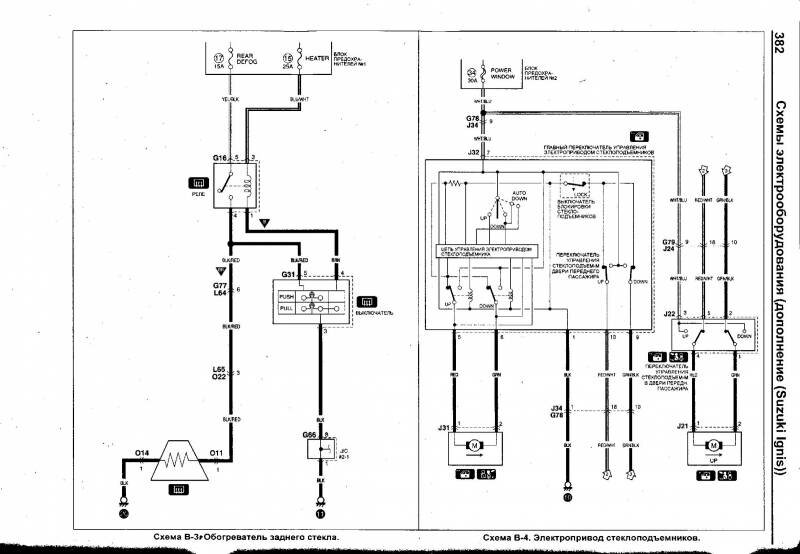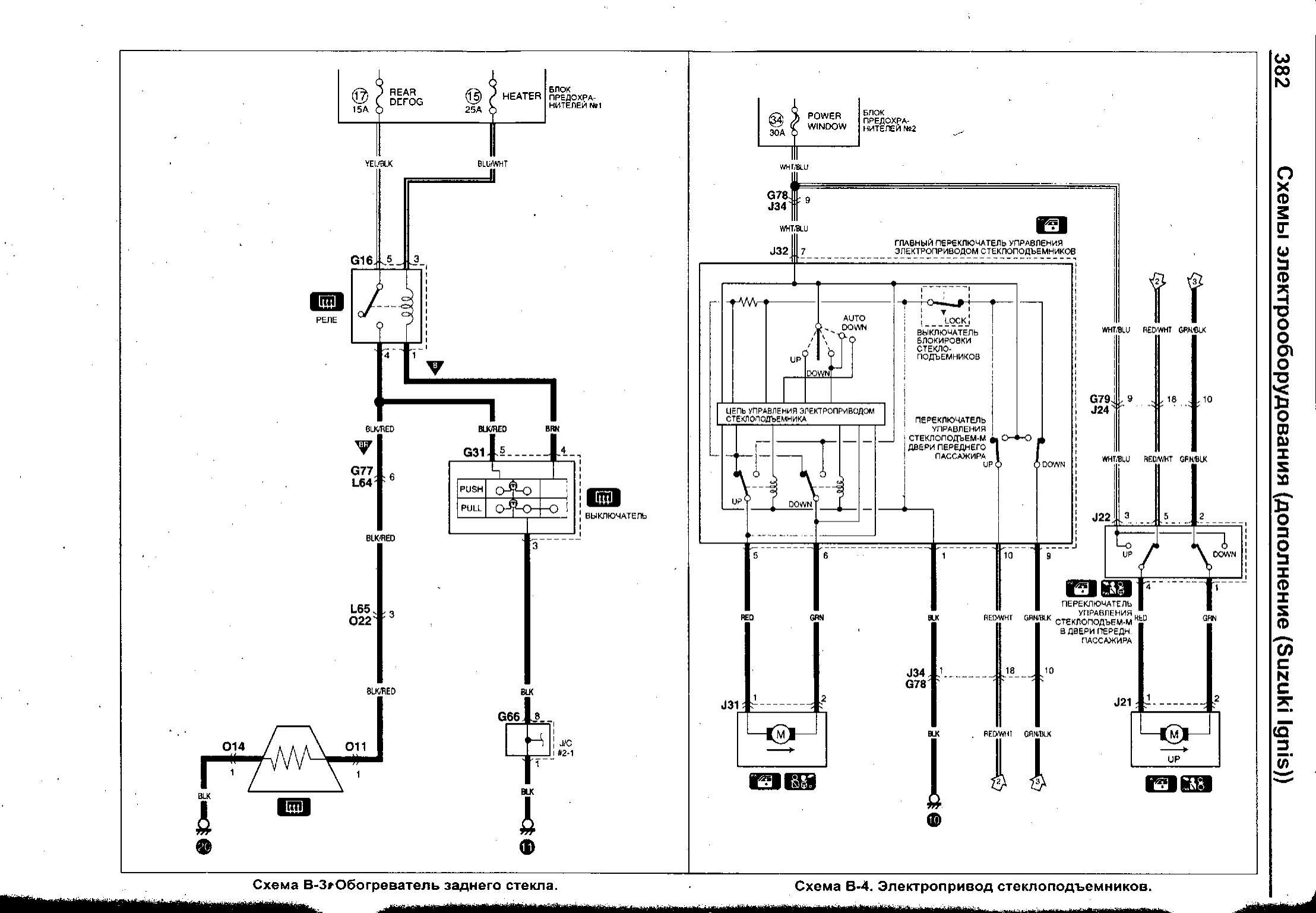 Схема электропривода стеклоподъёмников и обогревателя Suzuki Ignis