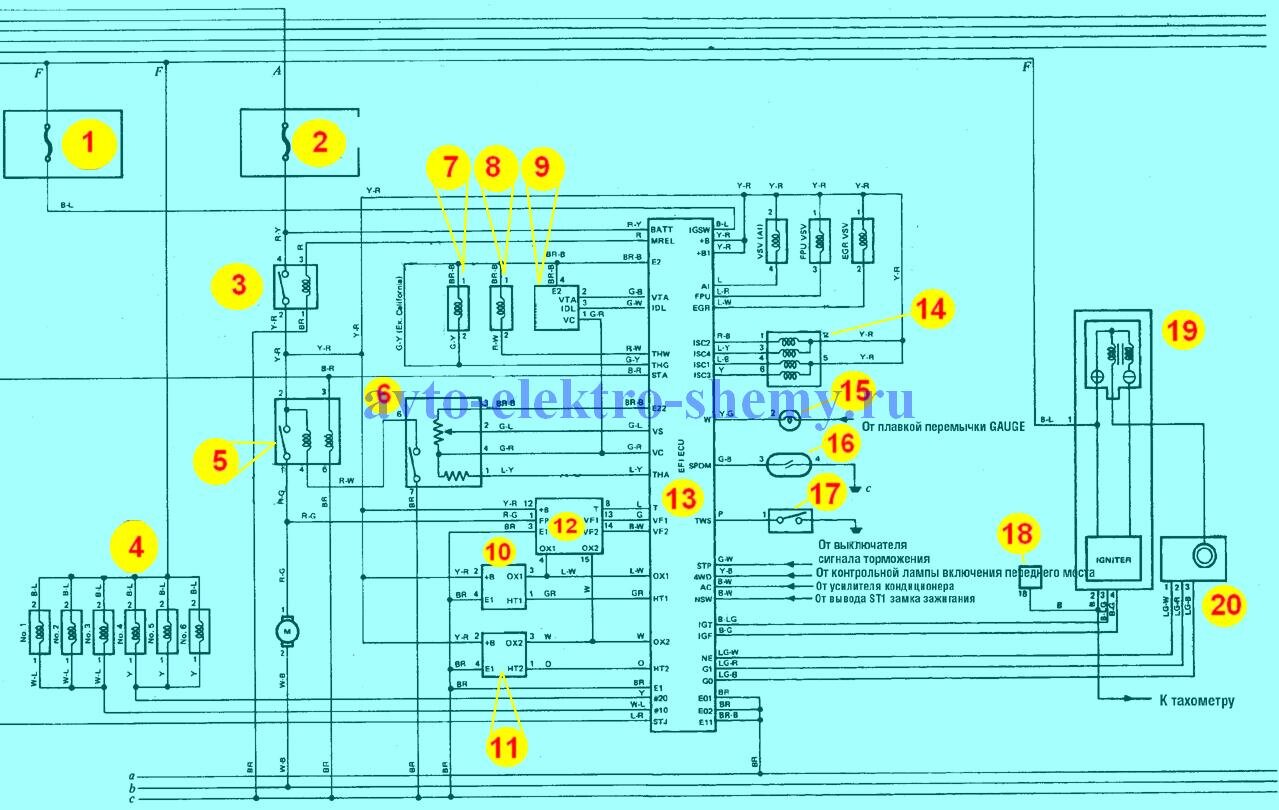 Перед выполнением работ с электрооборудованием автомобиля тойота отключайте массу от аккумуляторной батареи. На некоторых автомобилях это следует делать, только убедившись в том, что вы знаете шифр для раскодировки магнитолы. Перед тем как искать неисправность по схемам убедитесь в целостности предохранителей и степень заряда аккумуляторной батареи. Разъемы отсоединяйте держа их за корпус , а не за провода. Приступайте к ремонту только при наличии всех необходимых схем и инструментов.