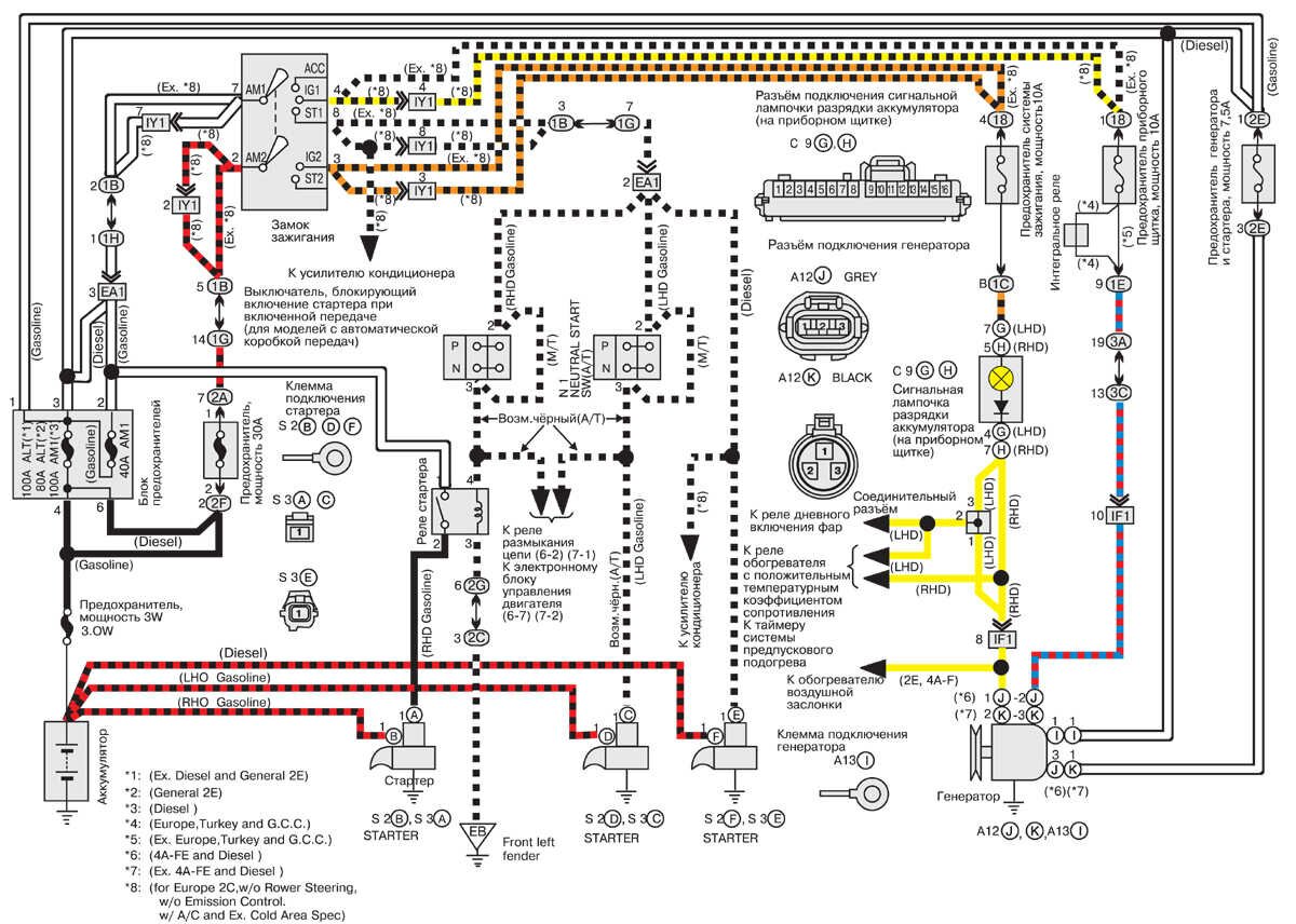 Схема системы зарядки аккумулятора и запуска двигателя