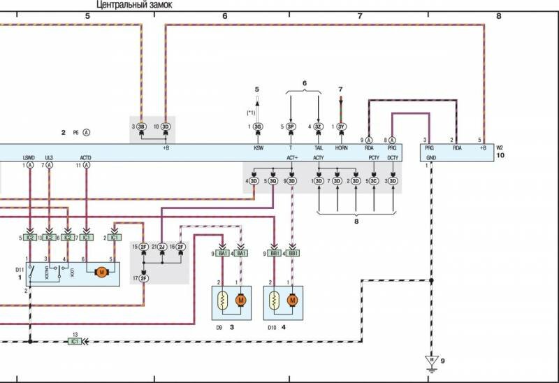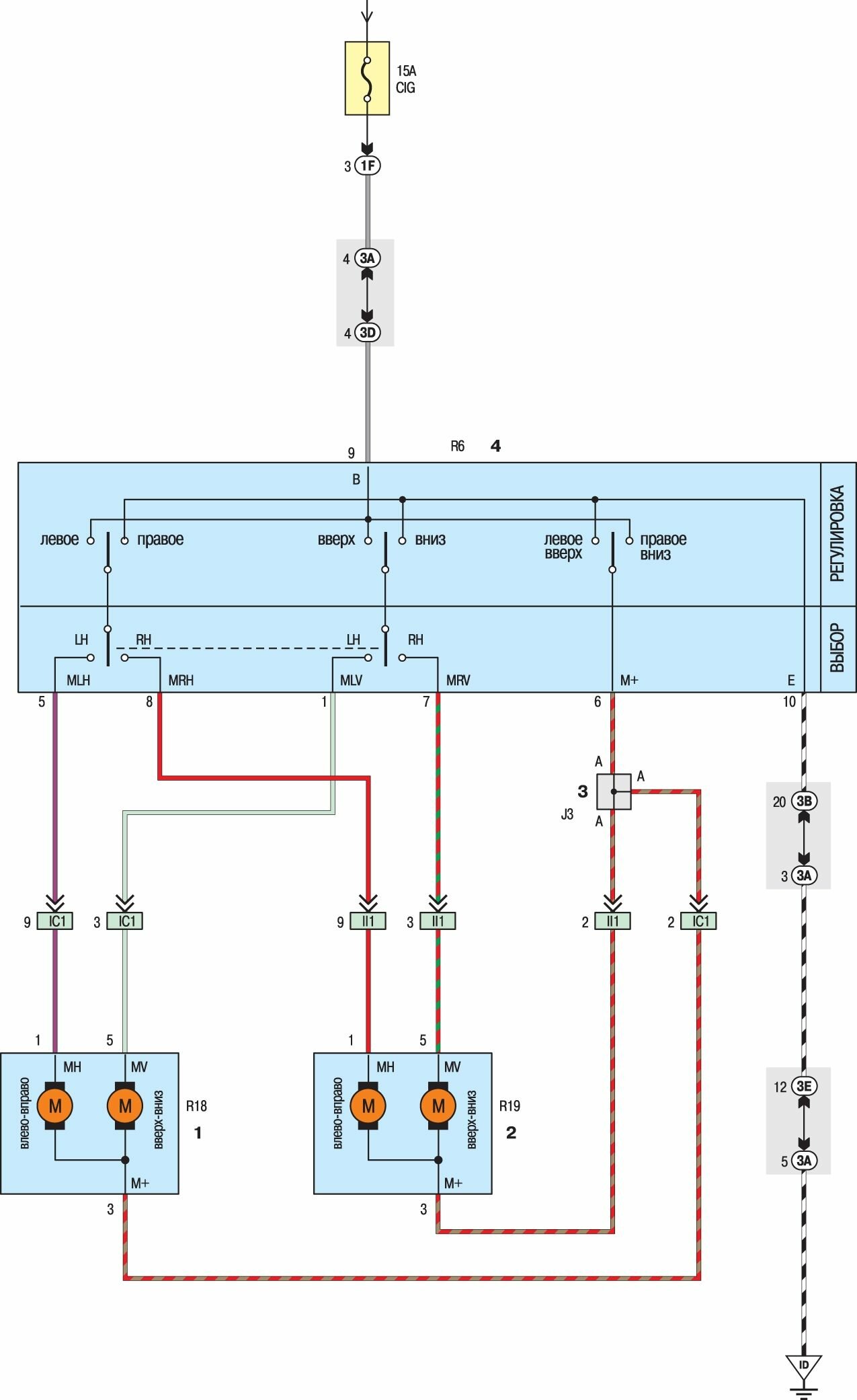 Электросхема габаритного освещения и подсветки Toyota Rav 4