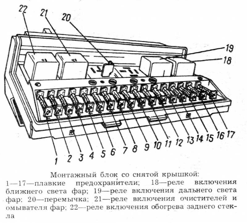 Схема ВАЗ-2104 - электропроводка и блок предохранителей. На ранних моделях автомобилей 2104 блок предохранителей составляли ненадёжные пальчиковые предохранители. Эта проблема была в держателях предохранителей, выполненных из пружин. В месте плохого контакта устройств выделялось много тепла, способного расплавить корпус блока, держатели начинали шататься и не могли хорошо зажимать предохранители, что и послужило поводом замены монтажного блока более старого образца на новые, с элементами вилочного типа.