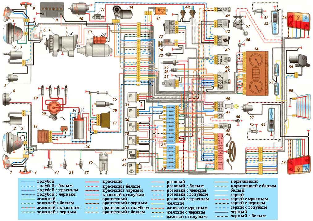 Электросхема автомобиля ВАЗ-2121 и его двух модификаций - ВАЗ-21213 и ВАЗ-21214. Схемы цветные, в отличном качестве и предоставляются для просмотра совершенно бесплатно.